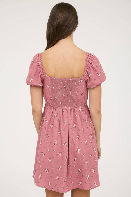 FLORAL FRONT LACE UP RUFFLE TIERED MINI DRESS