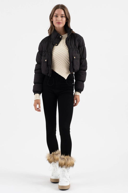 CROPPED ZIP UP CARGO PUFFER JACKET