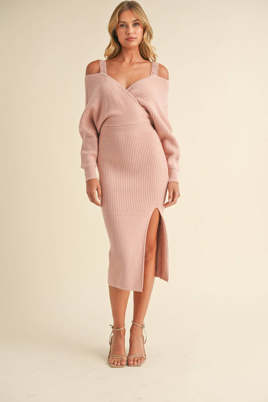WRAP BELTED LONG BISHOP SLEEVE MIDI DRESS