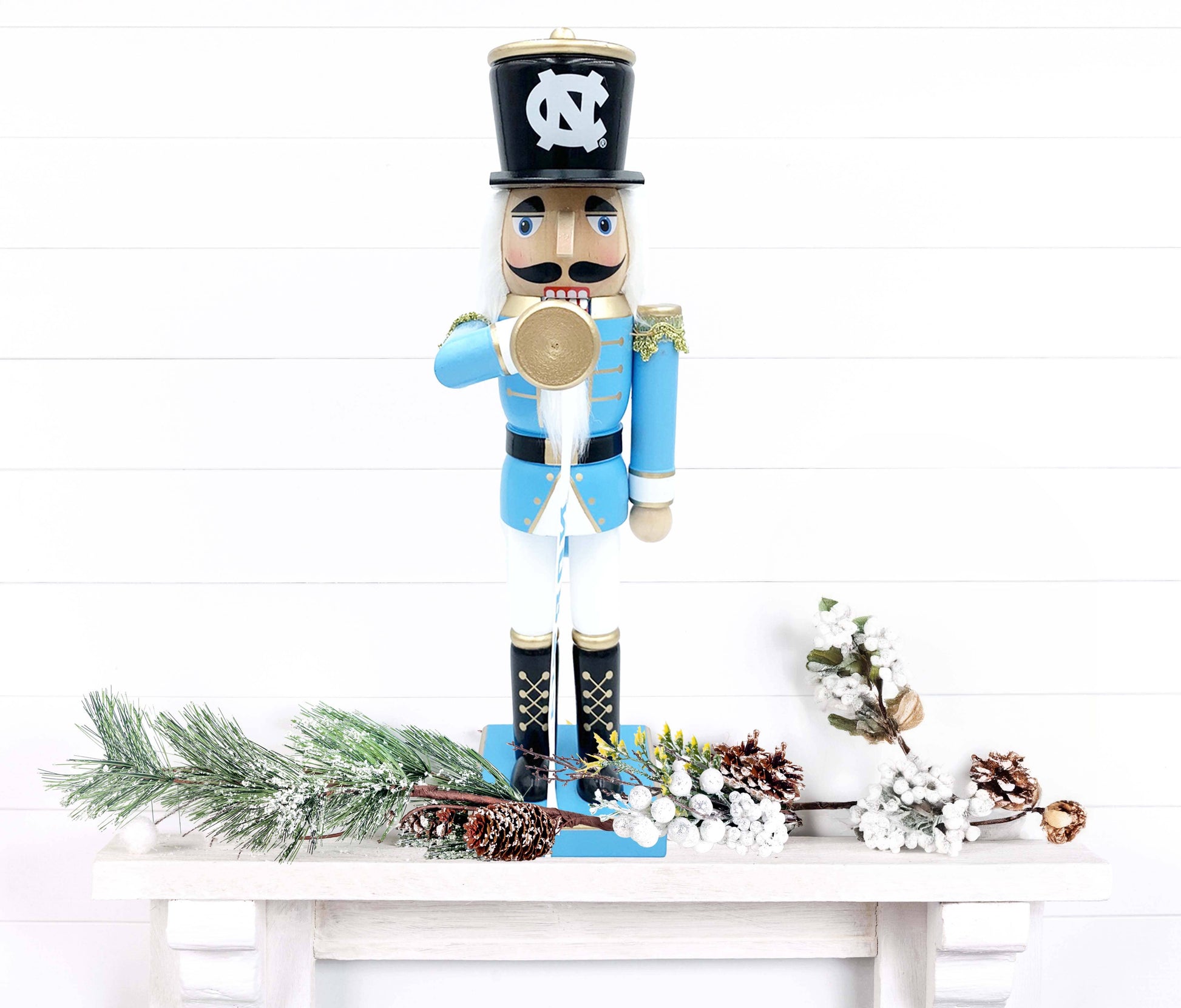 This handsome Christmas nutcracker has put on his finest uniform and eagerly waits to blow his golden horn announcing Santa’s arrival. Beautifully handcrafted from wood and hand painted, this elegant 14" UNC Bugler Nutcracker is sure to provide many years of pleasure.