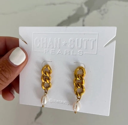 Chain and Pearl Earrings