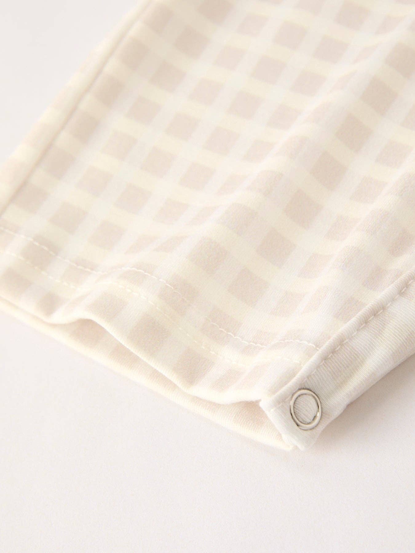 Celebrate the season in style with this Fall Thanksgiving Apricot Plaid Boys Romper. Featuring charming turkey embroidery and delicate smocking, it combines festive detail with cozy comfort. The warm apricot plaid pattern adds a seasonal touch perfect for holiday gatherings, making it an ideal outfit for your little one to shine during Thanksgiving celebrations.