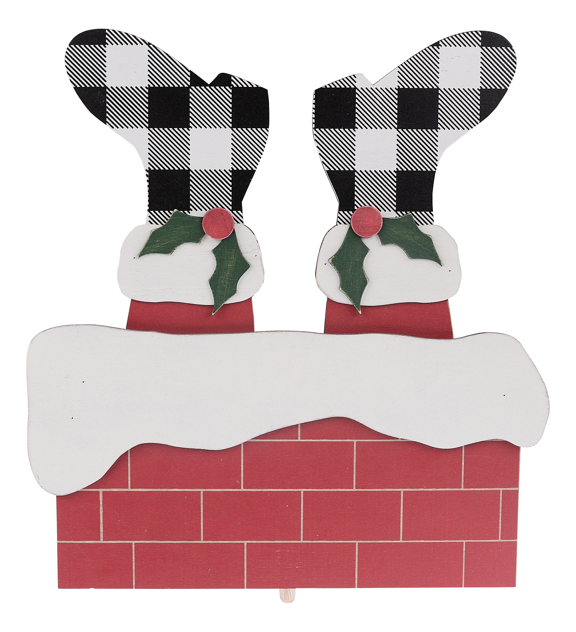 Add some cheer to your welcome board with this Santa down the chimney topper! Perfect for the holiday season, this piece is sure to bring a smile to everyone's face as they giggle over ol' Saint Nick getting stuck in the chimney atop a welcome board or stand. The fun patterns will make him stand out amongst the abundance of Santa decorations we see each year! * Original Design * Dimensions: 13" x 13" * Each of our toppers fits within our Welcome Boards and Stands making for easy decoration for any season!